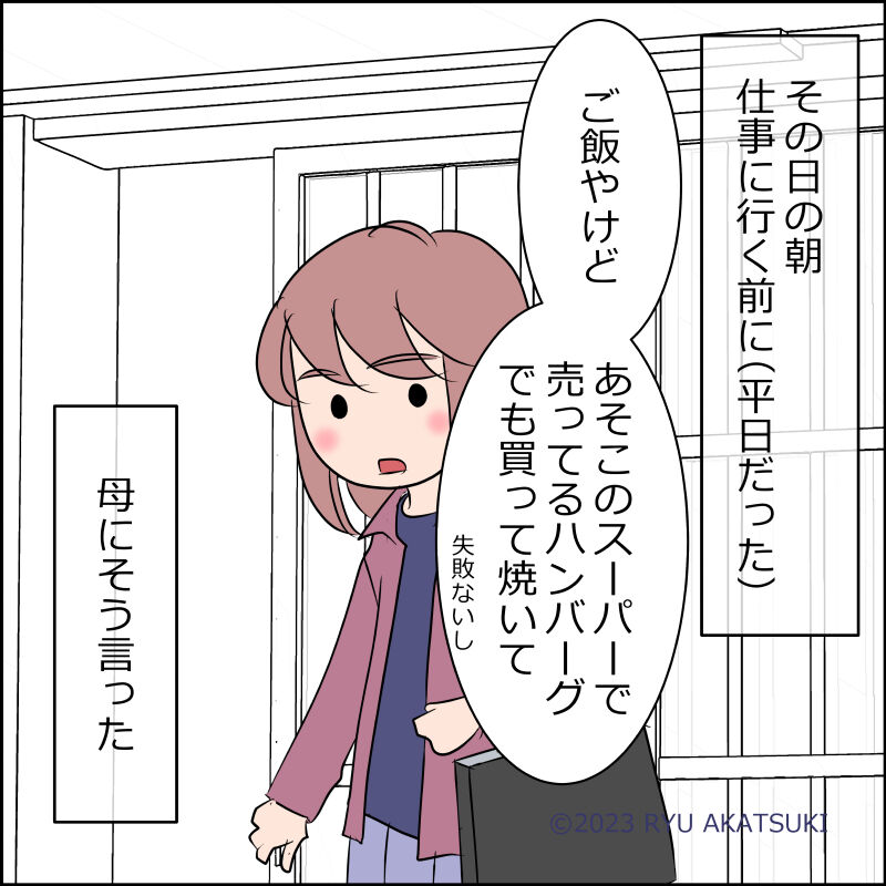 暁さんのお母さんが、言われた通りスーパーのハンバーグを出したことに、元夫が嫌な態度や文句言ったりしたら激怒モノですよ
