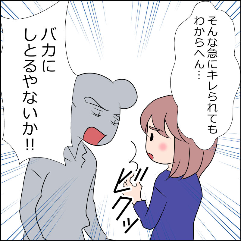 こんな突然キレる人と一緒に暮らせない。きっと小さなしょーもない事少しずつの積み重ね我慢しててある時ブチとキレるんでしょうが他人はわからないですよね。もうバイト君たちが来ても話しできないですね。
