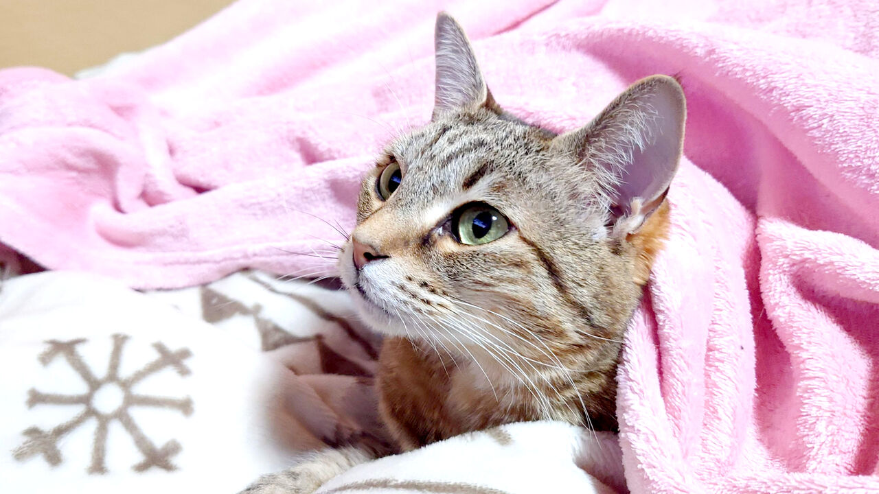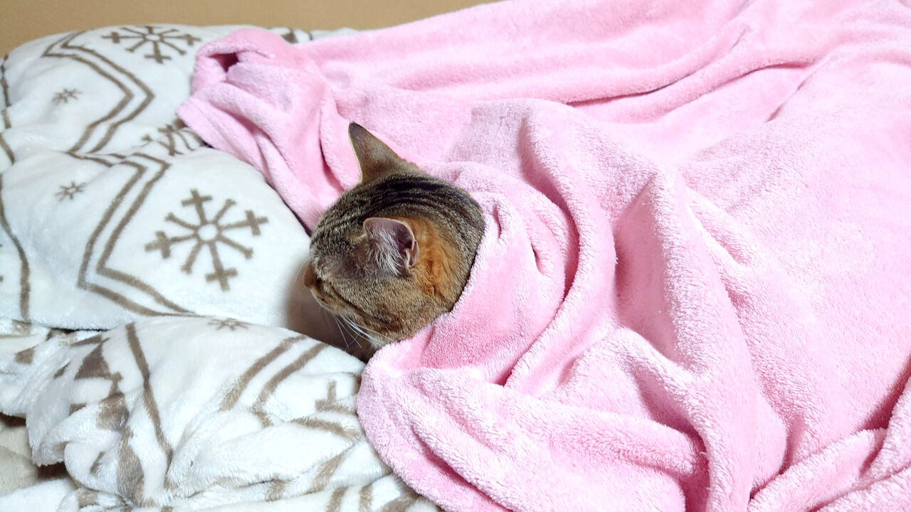 こちらは布団で寝てたので毛布をかけてあげたあんこ