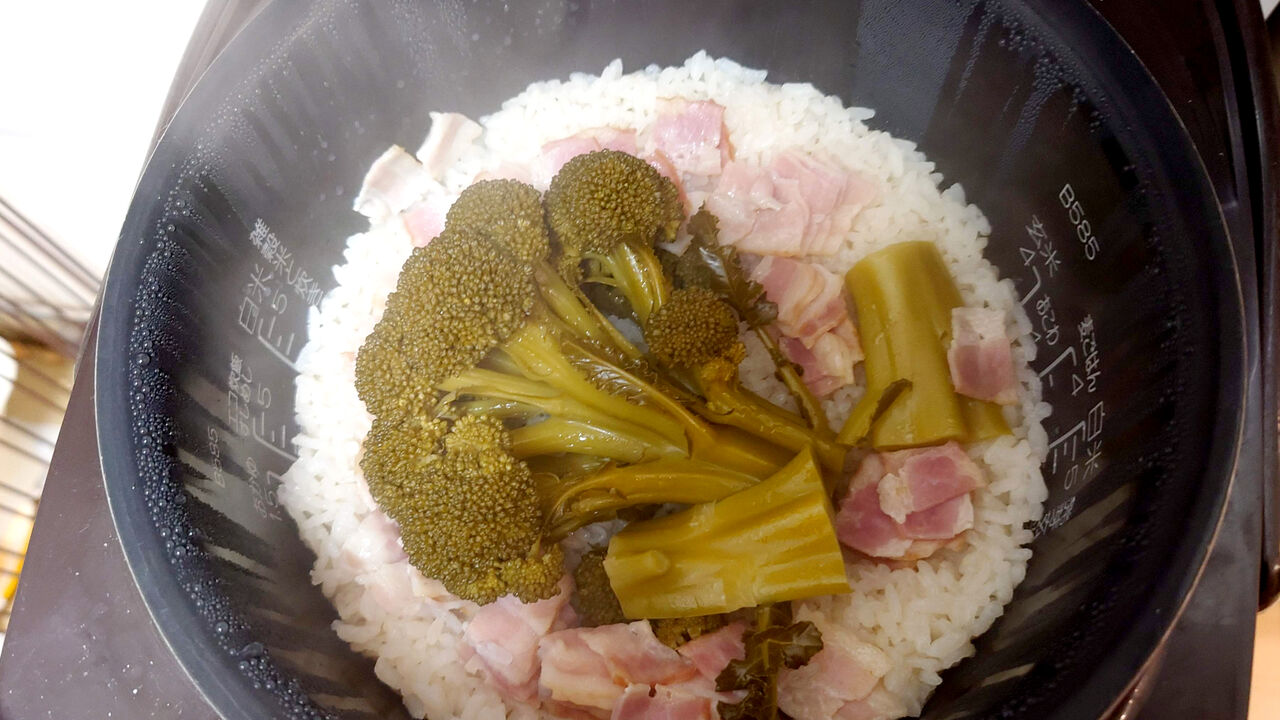 ブロッコリが炊けすぎてほぼ原形がのこらない…!