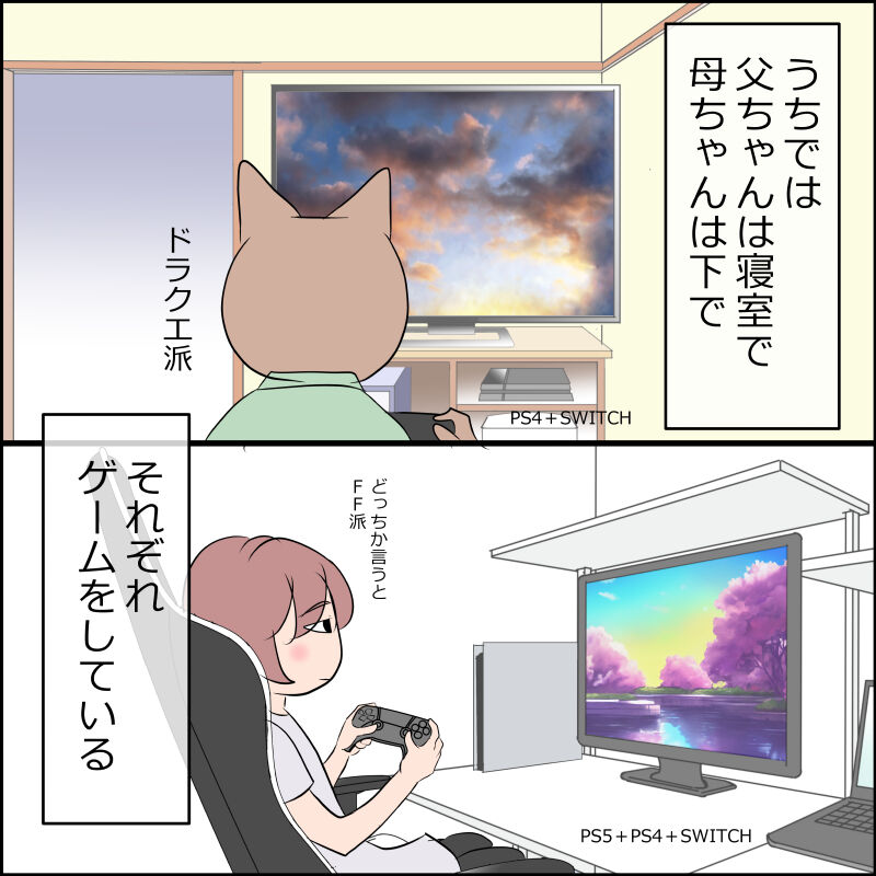 父ちゃんと母ちゃんはそれぞれの場所でゲームします。