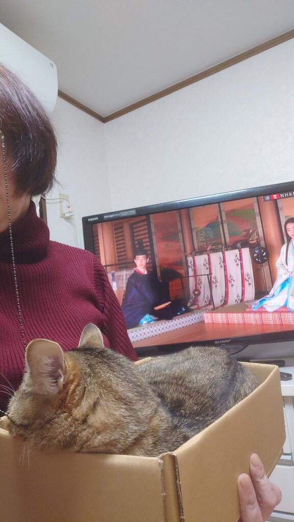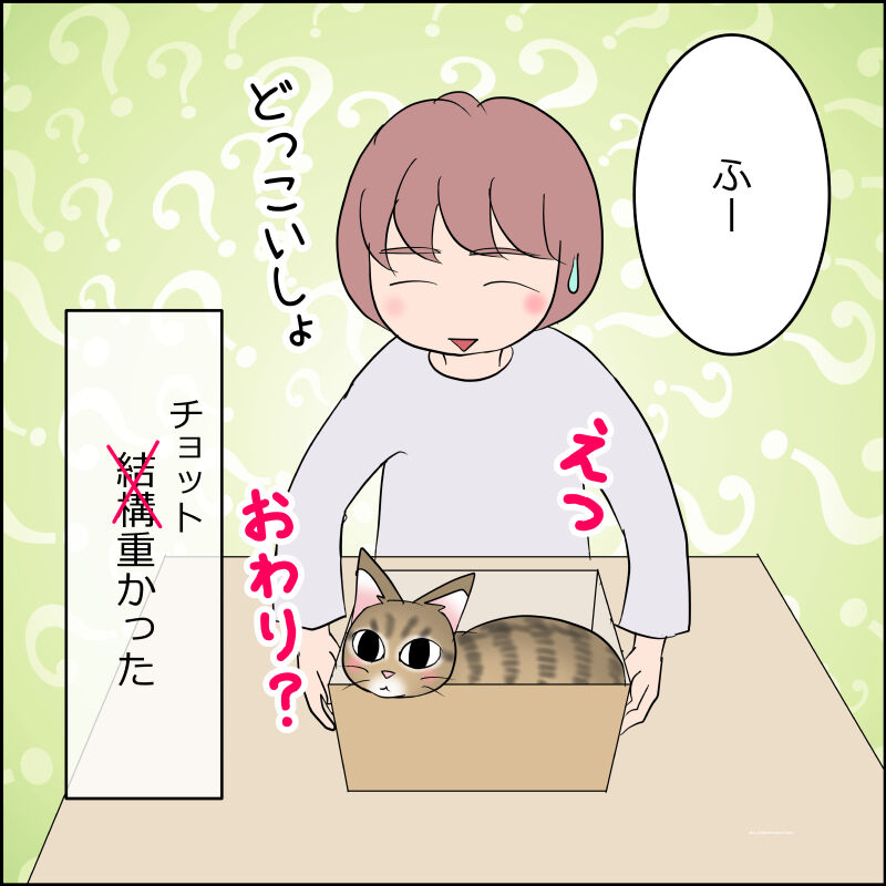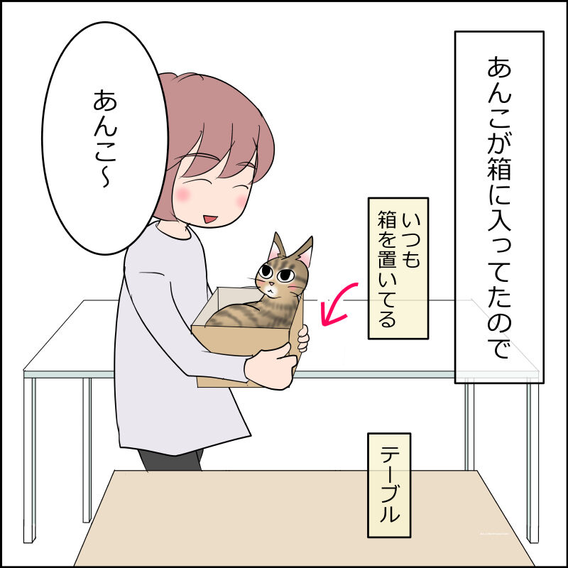 俯瞰で見ると「お散歩♪」と言いながら箱を持ってテーブルの周りをぐるぐる回ってる怪しいおばさん…。