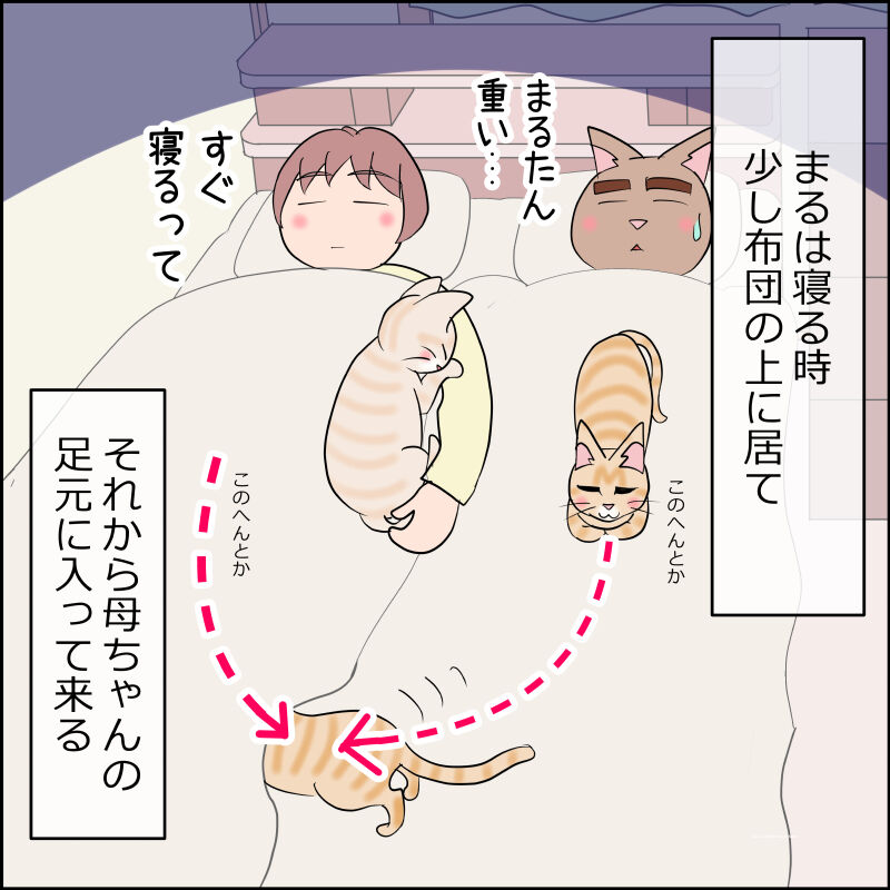 寒くなったのでまるも毎晩足元に入って寝ています。