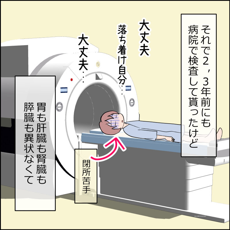 一通り検査して医師は「特に悪い所はない」と言いましたが「そんなわけない。こんな頻度で腹痛なのは絶対何かある。詳しく調べて」と依頼したら、やっぱり婦人科に良性の腫瘍と筋腫が見つかり、しっかり入院手術になりました。