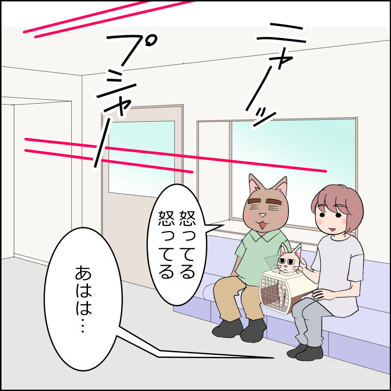 病院へ近付いたら、隙をついて口輪をし、同時にバスタオルで簀巻きにし、ガッシリはがいじめにしての受信でした。