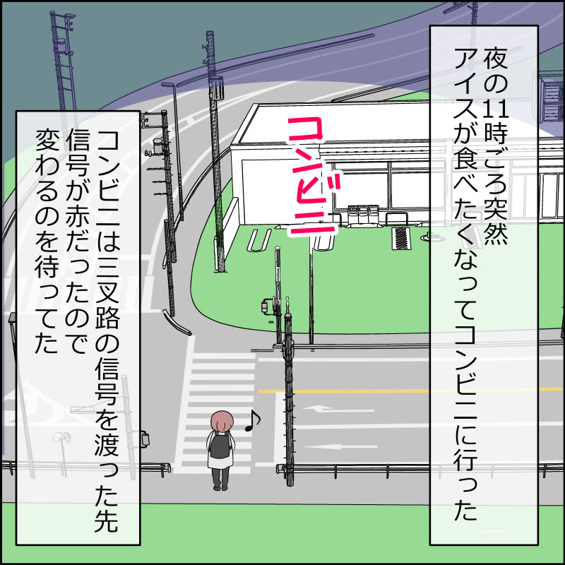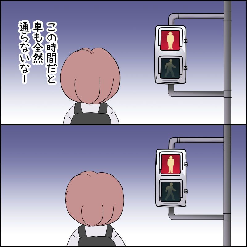 ここは押しボタン信号なのですが昼間の交通量が多い時はちゃんと時間で変わってたり、夜でも車が来たら自動検知して変わるので押したことなかったのです。