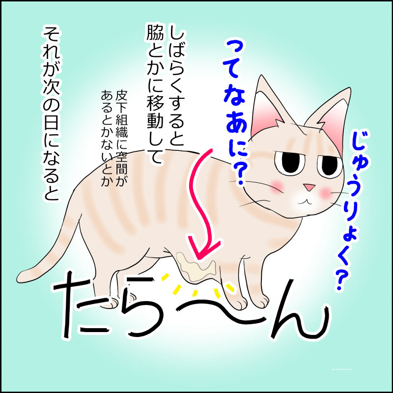 猫の皮下点滴の中身は水と電解質で栄養成分や薬は入っていません。