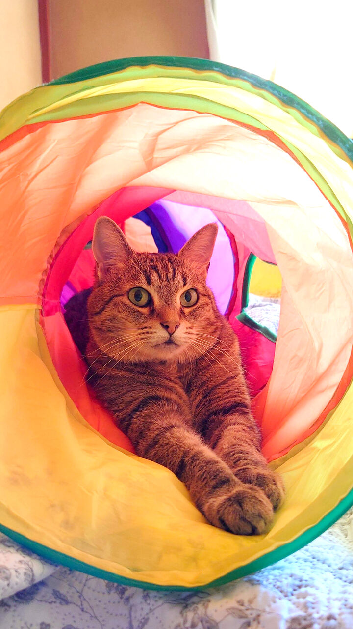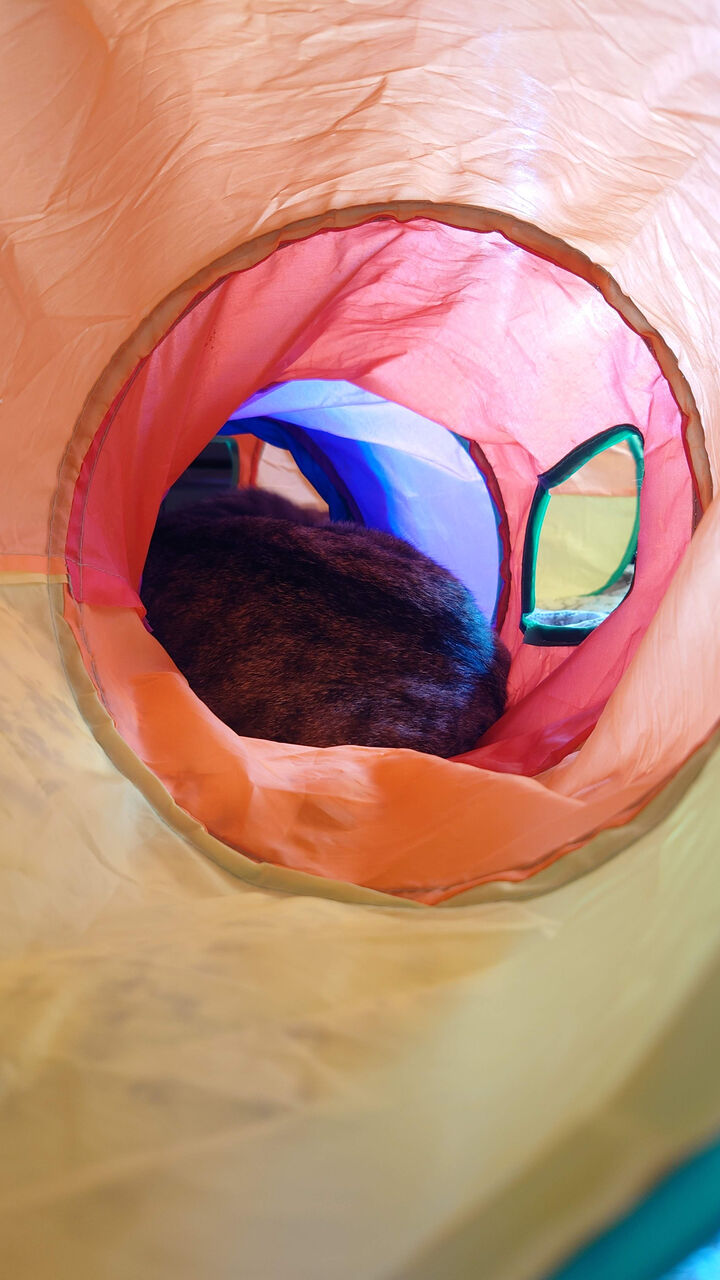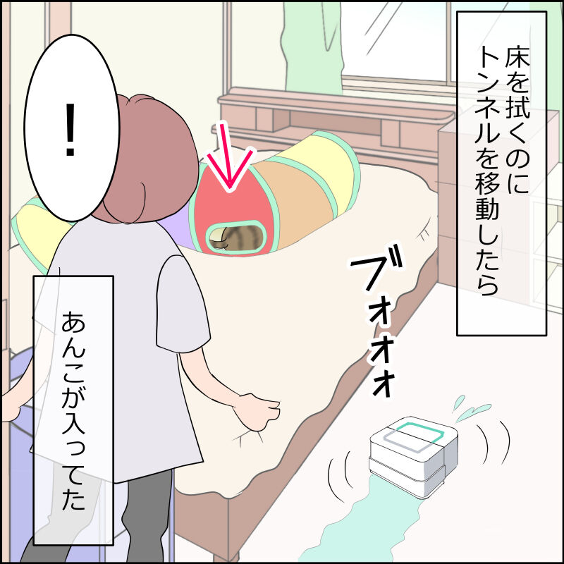 拭く間邪魔になるのでトンネルをベッドの上に移動させてると…