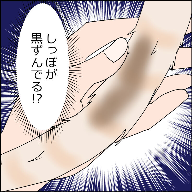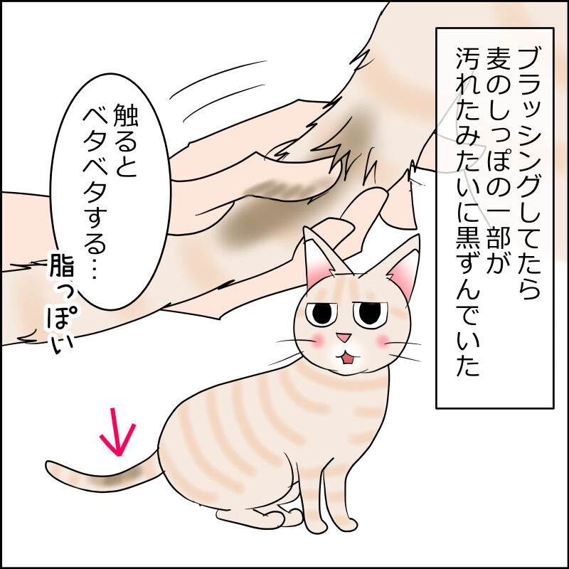 ブラッシングをしてて気付いたしっぽの黒ずみ。