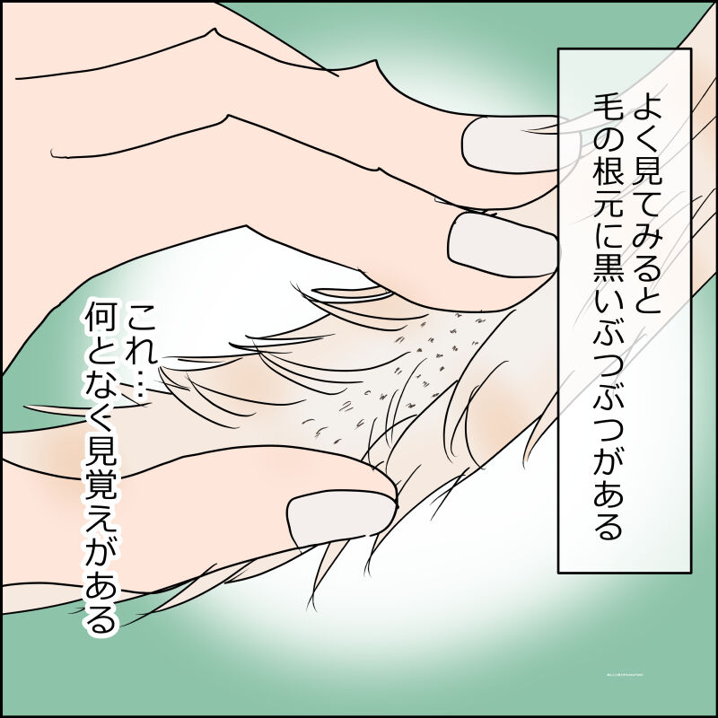 毛の根元に黒くいぶつぶつが見えます。