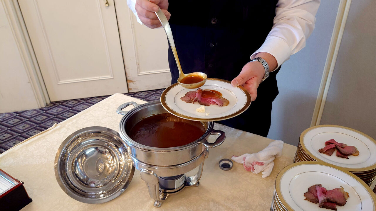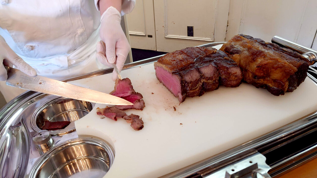 ローストビーフはその場で切り分け