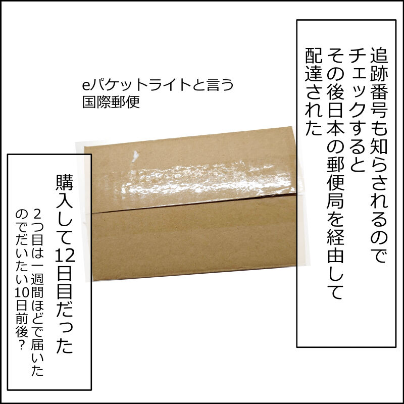 一回目は12日2回目は一週間ほどで届いたので余裕を持って購入したほうがいいと思います。