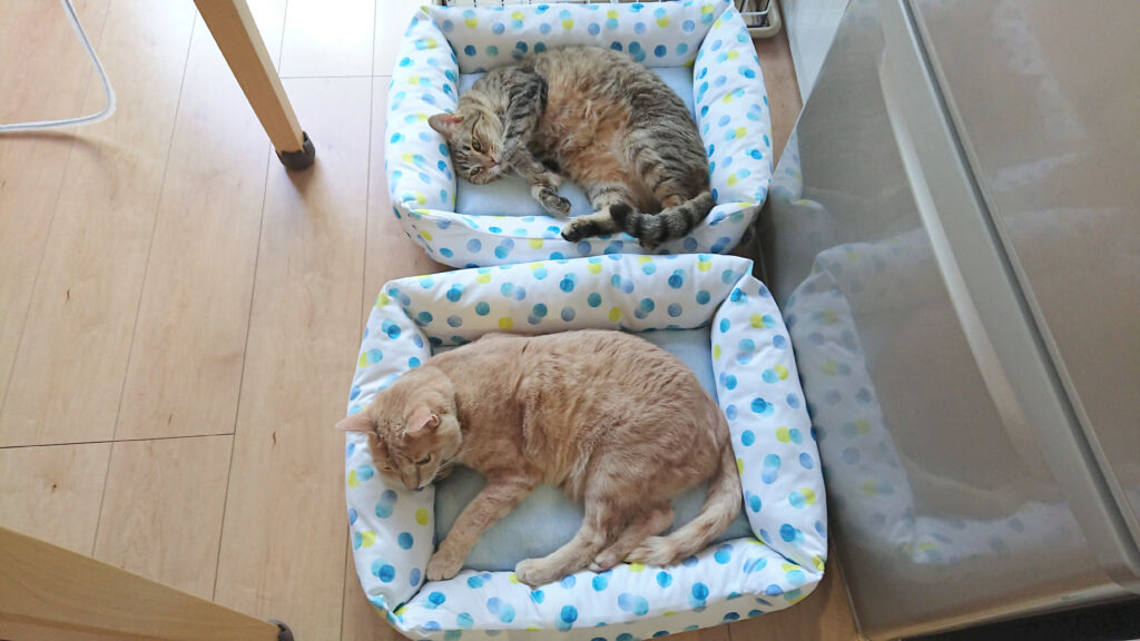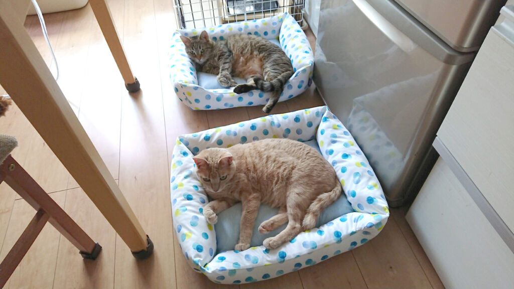みんながはみ出して寝るのでワンサイズ大きくしたのです