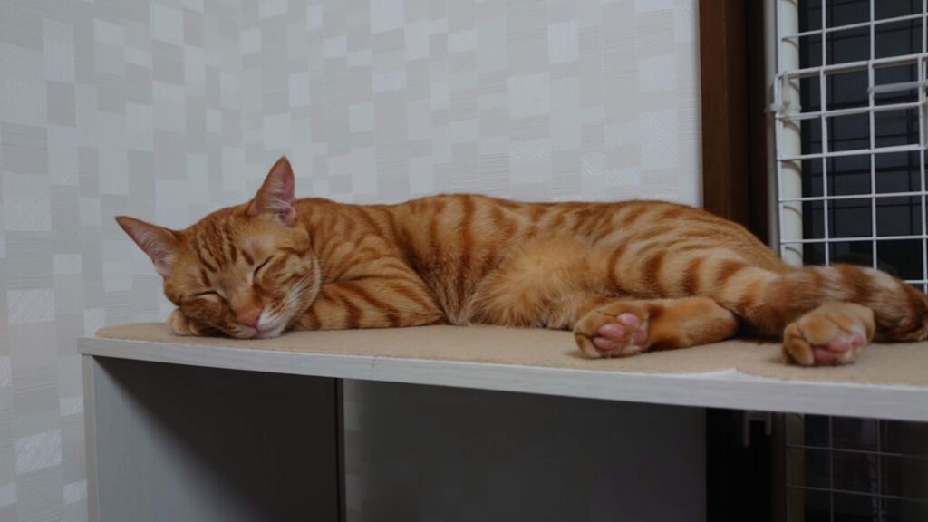母ちゃんと麦は巻き込まれないよう身を寄せ合って寝てます