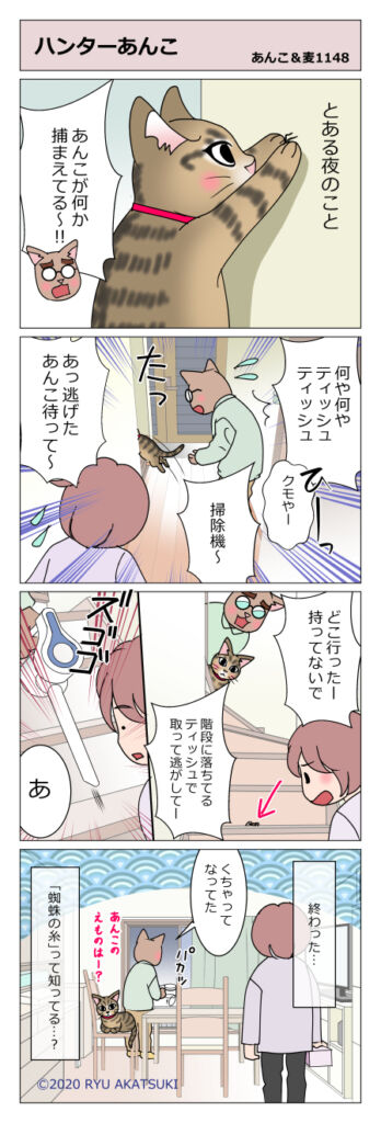 あんこ&麦549「狩人(ハンター)誕生」 2018年03月29日 人物紹介はこちらから 最初から読むにはこちらから(14話~) 木曜ですが5週目なのでいつものあんこと麦です。 興奮すると鼻息が荒くなります。 おいしくなかったようです( ノД`) やればできるねこです 猫としては頑張ったしほめてあげたい! 人間としてはクモさんは益 ... 続きを読む