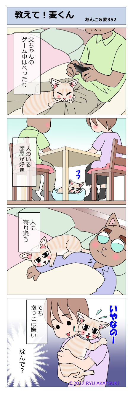 あんこ&麦352「教えて!麦くん」 2017年08月12日 今日の2回目の更新になります。 一回目はこちら→ 人にくっついたりもたれたり。 お迎え来たり腕枕したり。 そんな麦の不思議・・・ なんでーーーーーー?????? くっついてくるので人が嫌いではないと思うのですが・・・。 もたれるけど、抱っこはだめです。 ヒザに ... 続きを読む