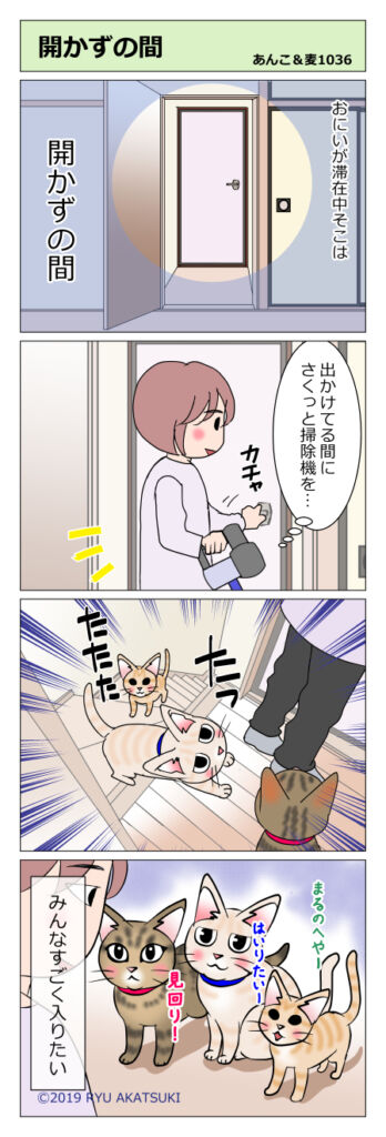 あんこ&麦1036 あかずの間(猫まんが) 2019年12月17日 今回ちょっと長めの滞在だったおにい。そこは開かずの間です。 掃除出来ない;; みんな察するの早い!気が付くと待ち構えています。 なかなかいいべっどです 夜は夜でまるを寝かせにいくと麦パパもついて来る…いっそ一緒に寝てくれ!(*´ω`) いつもは開 ... 続きを読む